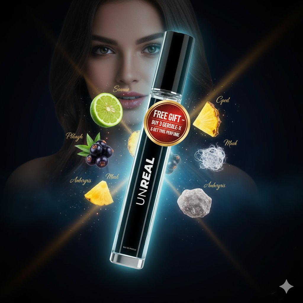 “Perfume Unreal bukan sekadar bau wangi biasa Sekali spray terus naik aura maskulin yang buat pasangan makin ghairah. Bayangkan bila tenaga kau dah padu dengan Gersole-X, ditambah pula haruman premium Perfume Unreal yang buat bini tak lepas pandang… inilah combo rahsia yang buat ramai lelaki senyum puas. Lagi best, perfume eksklusif ni kau boleh dapat PERCUMA bila beli 3 botol Gersole-X – stok terhad, siapa cepat dia dapat!”