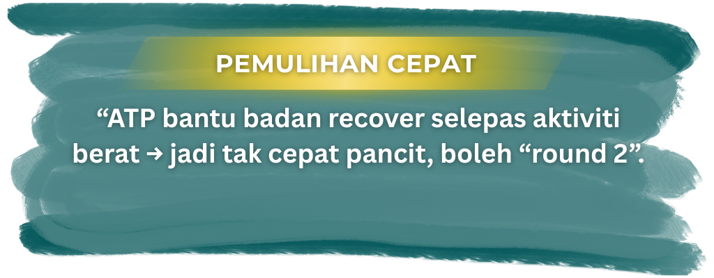 ➡️ Setiap sel tubuh, termasuk sel otot & sel lelaki, guna ATP untuk dapatkan tenaga segera.